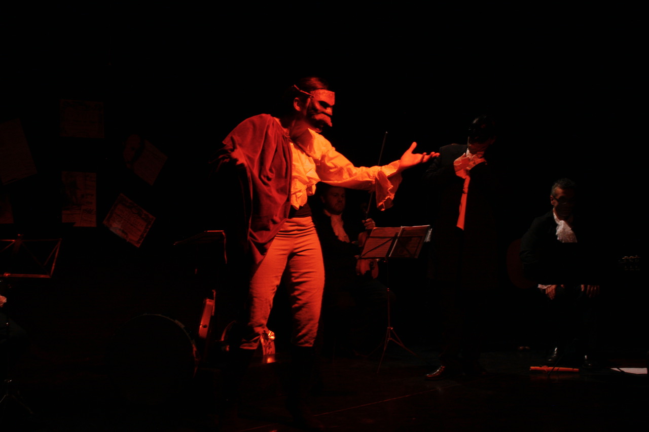 Il pubblico viene accompagnato su questi sentieri pericolosi dove le serenate, i notturni, i nachtmusik, i divertissement si intrecciano alle parole di Molière, Tirso da Molina, Tritto.